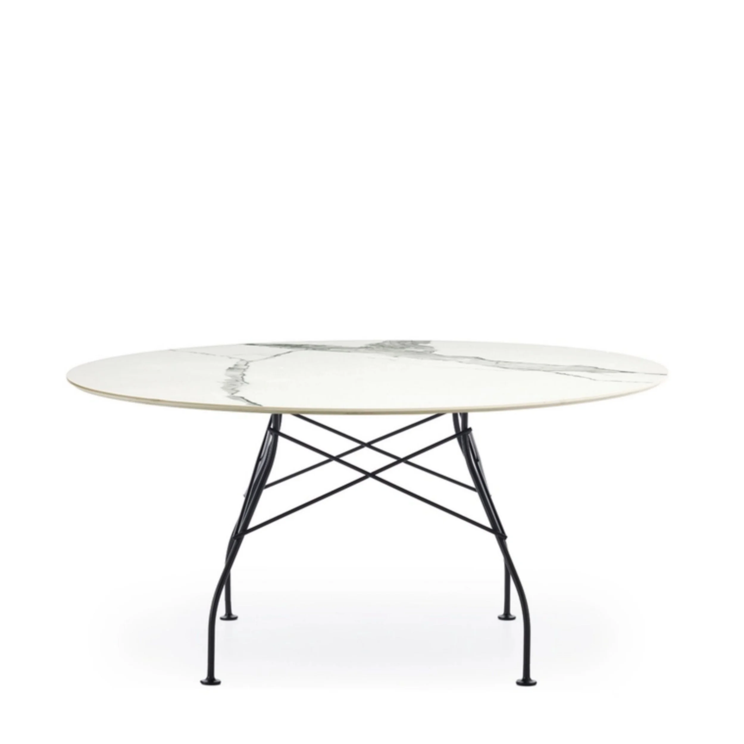 Uma família de mesas ideal para casa e escritório. A estrutura leve em aço é diferenciada pelo uso do elemento transversal que une as pernas em cada um dos quatro lados, sustentando o tampo. A coleção inclui versões quadradas, ovais e redondas.